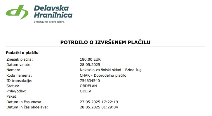 Skupaj smo zbrali že 180 evrov, ki jih je oči že nakazal v šolski sklad! Ravno prejšnji teden smo imeli v šoli prireditev Pomoč sošolcu, kjer vsako leto zbiramo denar za ta namen in res sem vesela, da sem lahko letos pomagala tudi jaz.